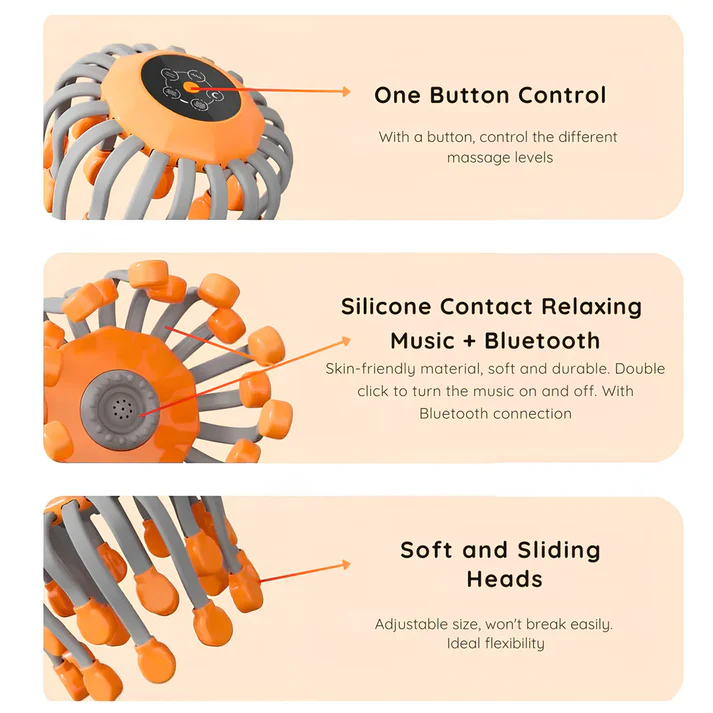 An ergonomic, silicone‑cushioned device designed to fit all head shapes comfortably. It offers five massage modes and built‑in calming music (that can be toggled), activated with a single button for instant relaxation. A single charge lasts 6–7 days with normal use. Backed by over 4,000 positive reviews and a 30‑day money‑back guarantee, it aims to deliver deep, lasting relief from migraines and stress—not just temporary comfort